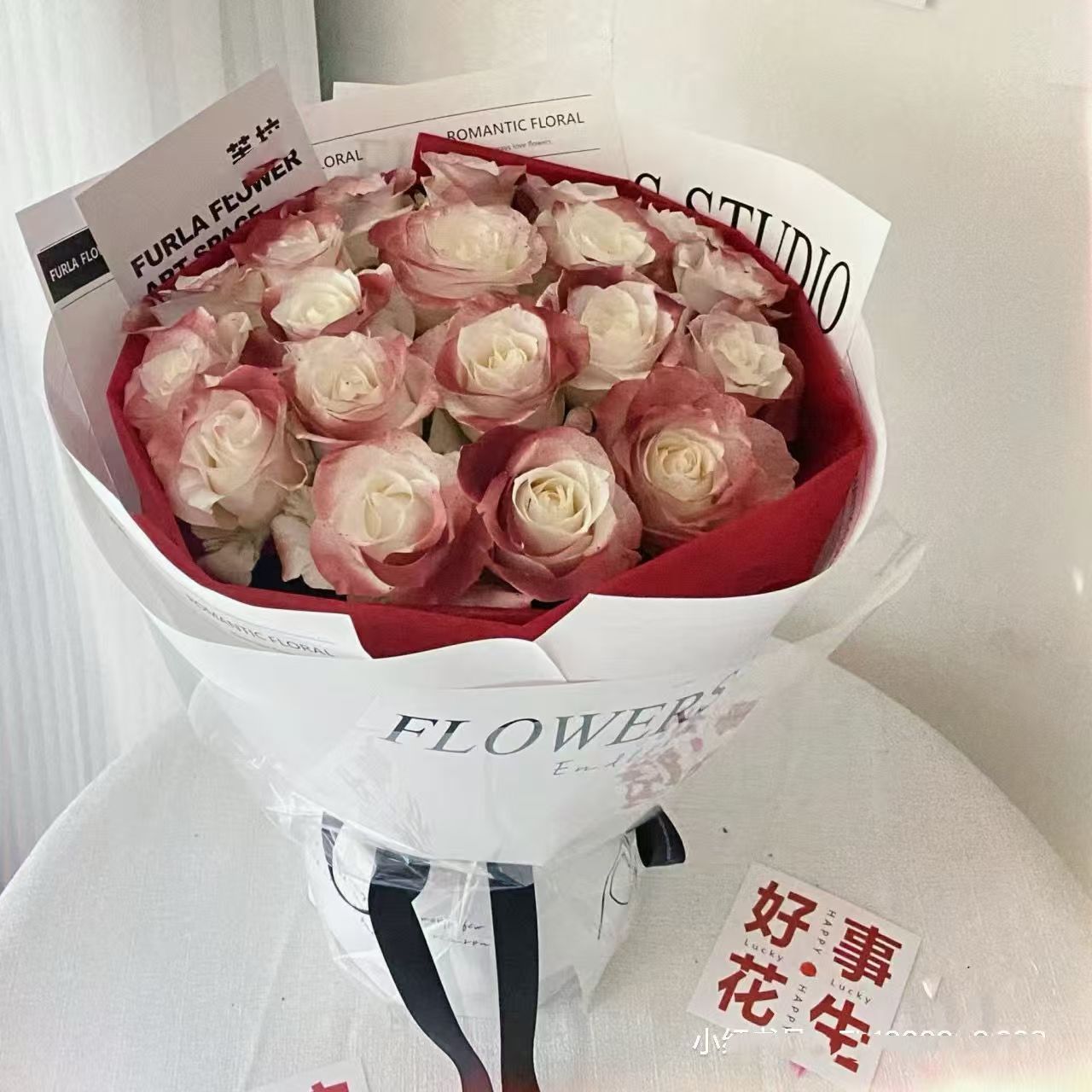 渐变碎冰玫瑰香皂花33朵玫瑰花束成品仿真花永生花生日礼物送女生